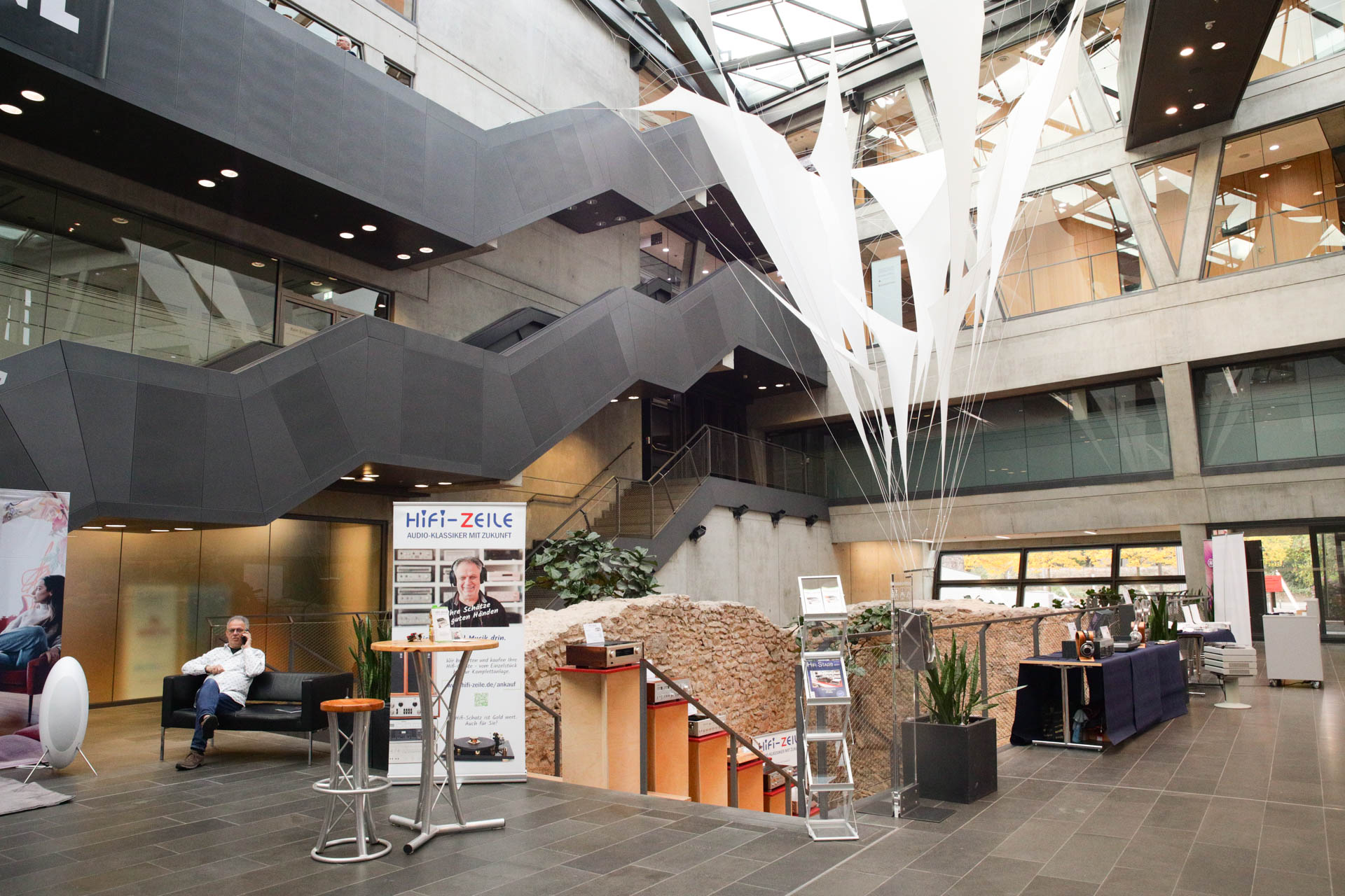 Der HiFi ZEILE Messestand war dieses Jahr wieder direkt im Foyer des darmstadtium zu finden, dieses mal mit noch mehr Geräten, insgesamt 14 an der Zahl.