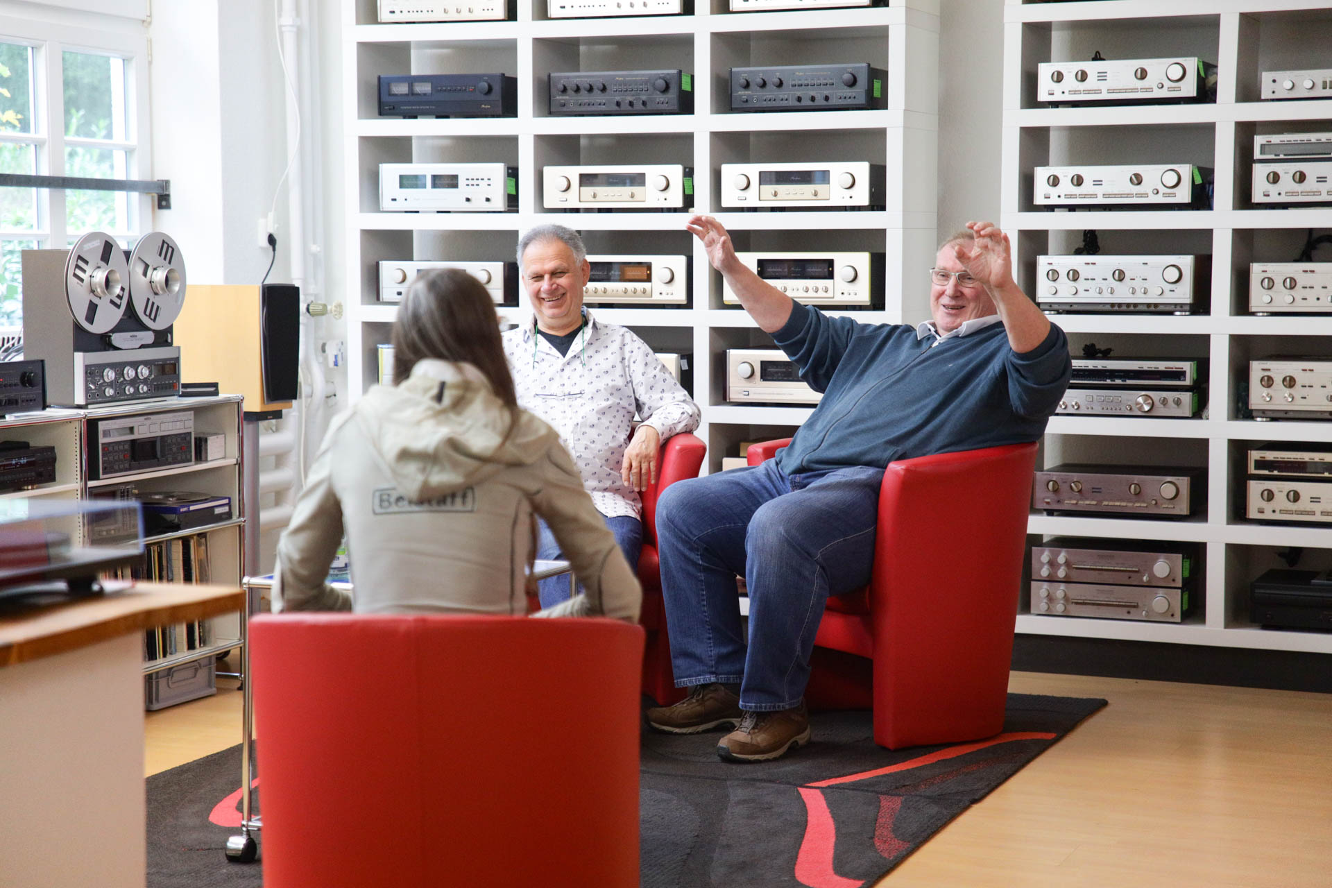 Zwischen all unseren Hifi Schätzchen hat sie mit uns gefachsimpelt, gelacht und natürlich gefilmt. Ganze acht Videos sind dabei entstanden – vom Firmenrundgang über Interviews mit Pierre Wittig und seinem Hifi Buddy Holger Laudeley (wie Alles begann!) bis hin zu tiefen Einblicken in die Revision eines harman/kardon HK-6500. Sogar ein Gespräch über Röhrenverstärker und Messkurven durfte nicht fehlen.